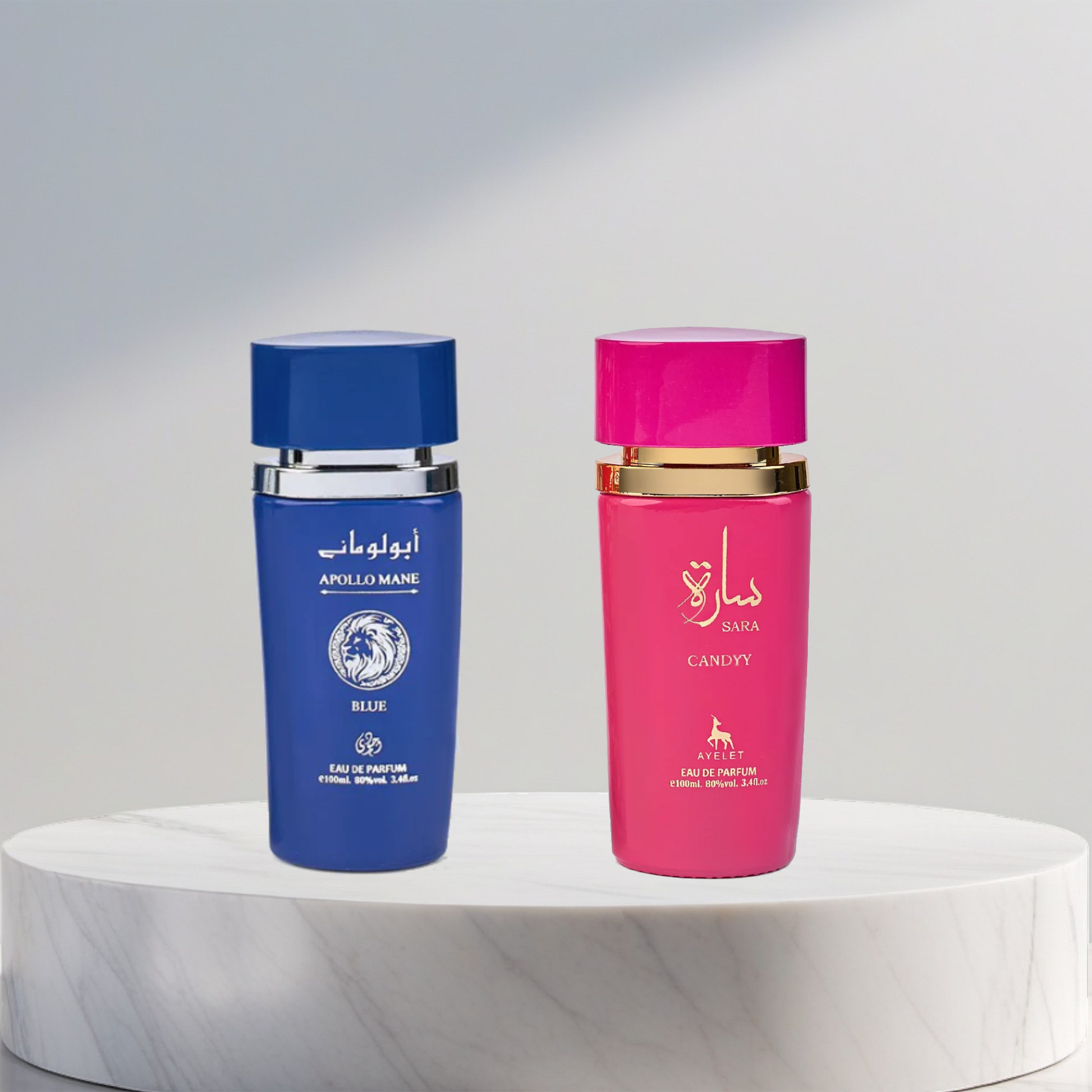 Set 2 Parfumuri Arabesti (Barbat + Dama) - Apollo Mane Blue + Sara Candy